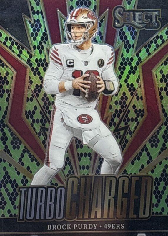 Brock Purdy 2023 Select #TUR-BPU Turbocharged - Green & Black Snakeskin /2 RAW Price Guide