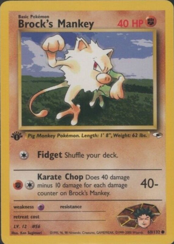 Brock's Mankey 68/132 1st Edition Gym Heroes Pokemon Card NM