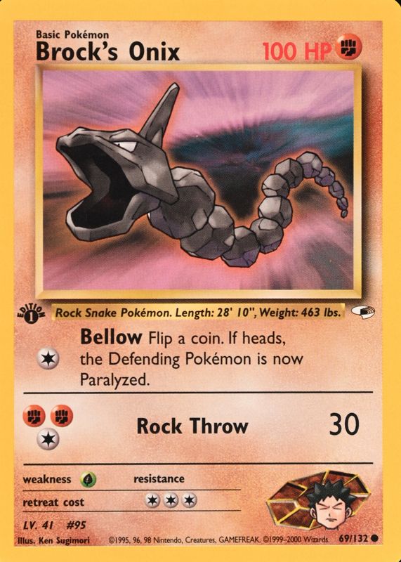 Pokemon TCG Brock's Onix 69/132 1st Edition WOTC Gym Heroes NM