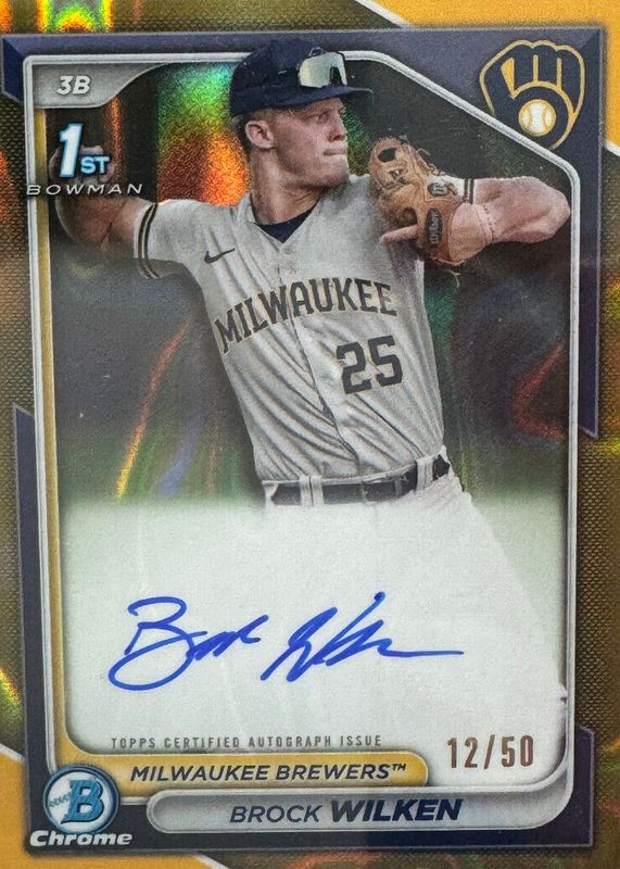 2024 1ST Bowman Chrome Brock Wilken & #17/50 Gold Lava On Card Auto. Brewers