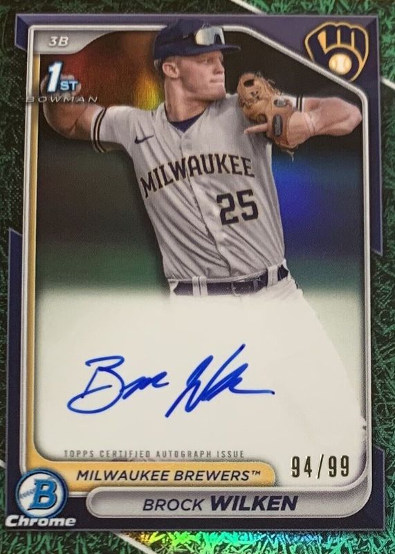 2024 Bowman Chrome Brock Wilken Brewers 1st Green Grass Auto /99