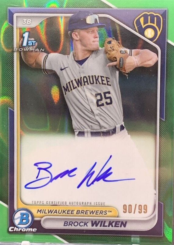 2024 Bowman Chrome Brock Wilken Auto #48/99 Green Lava Refractor Brewers 1st