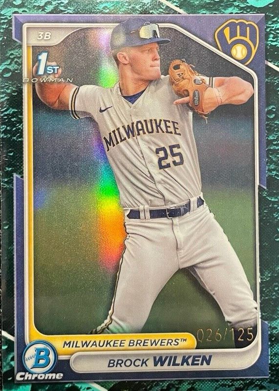 2024 Bowman Chrome Brock Wilken /125 Aqua Lunar Refractor 1st Bowman Brewers
