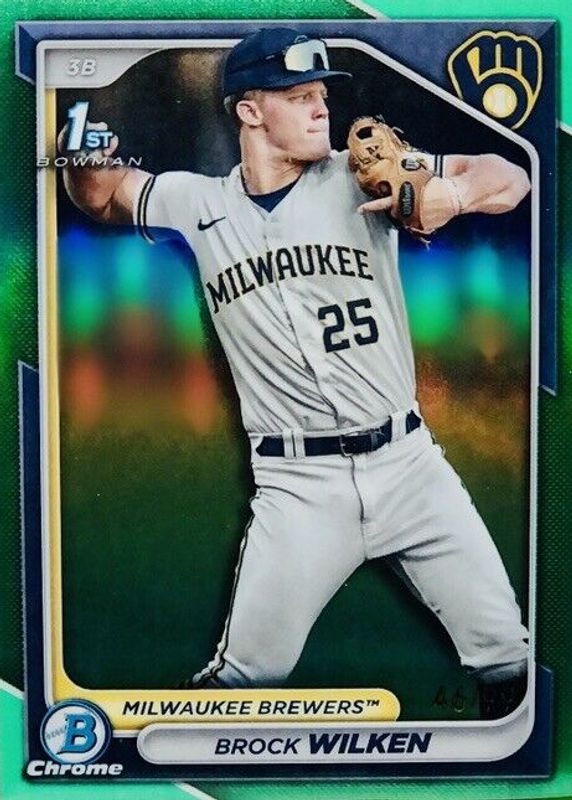 2024 Bowman Chrome #BCP-86 Brock Wilken #D 1/99 GREEN PARAPROSPECT CARD Brewers