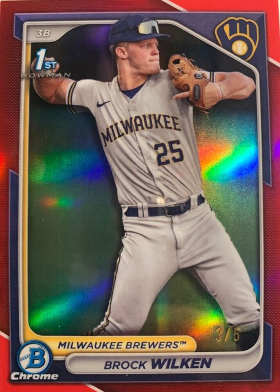 2024 Bowman Chrome BROCK WILKEN 1st Red Refractor #5/5 Milwaukee Brewers