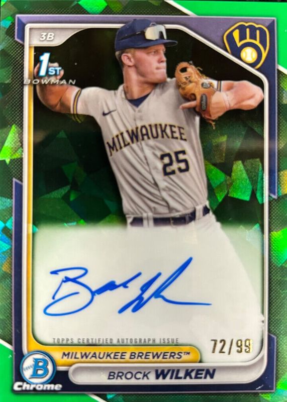 2024 Bowman Sapphire Brock Wilken Green 1st Auto 44/99 Brewers BSPA-BW