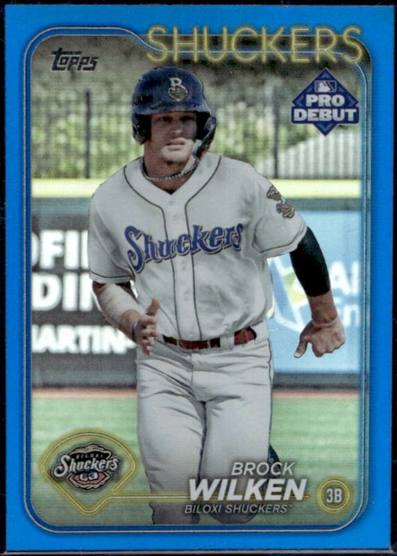 The Brock Wilken 2024 Topps Pro Debut #PD-57 Blue Foil /150 card is 1 of 43 Brock Wilken's card variations in the 2024 Topps Pro Debut set being tracked by Sports Card Investor, including Base, Fuchsia Foil /199, Sparkle Foil /175, Green Foil /99, and Aqua Foil /75.