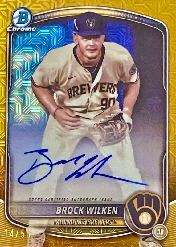 Best Prices Available For Sale of Brock Wilken 2025 Bowman Mega Box #BMA-BW Chrome Prospect Auto - Gold Refractor /50