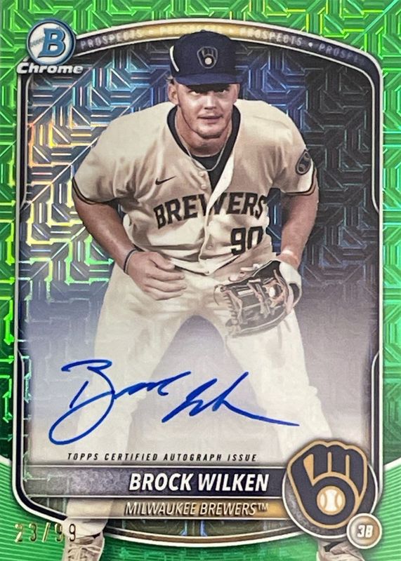 Best Prices Available For Sale of Brock Wilken 2025 Bowman Mega Box #BMA-BW Chrome Prospect Auto - Green Refractor /99