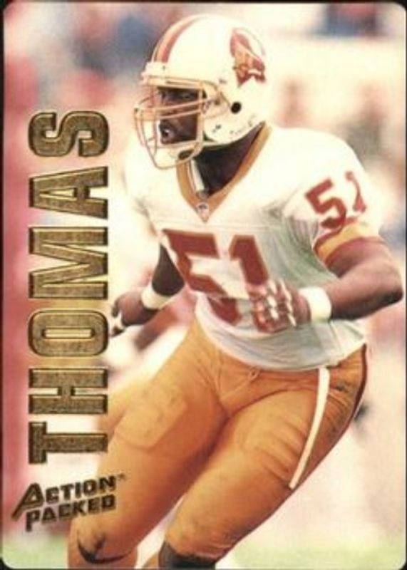 The Broderick Thomas 1993 Action Packed #159 Base card is 1 of 2 Broderick Thomas' card variations in the 1993 Action Packed set being tracked by Sports Card Investor, including Mint /500.