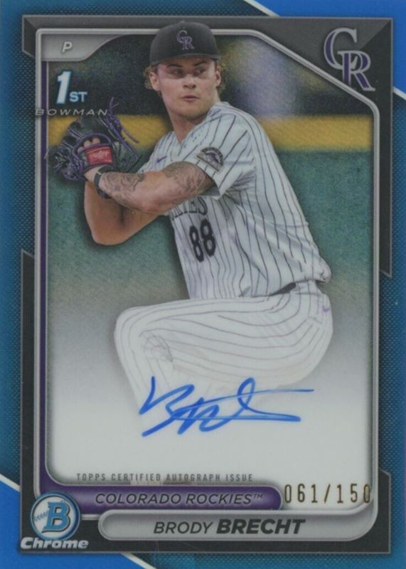 2024 Bowman Draft 1st BRODY BRECHT Chrome True Blue Refractor Auto /150 Rockies