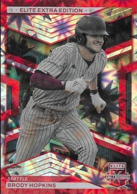 The Brody Hopkins 2023 Elite Extra Edition #67 Red /5 card is 1 of 39 Brody Hopkins' card variations in the 2023 Elite Extra Edition set being tracked by Sports Card Investor, including Base, Pink, Signatures, Status Green /499, and Signatures die-cut /399.