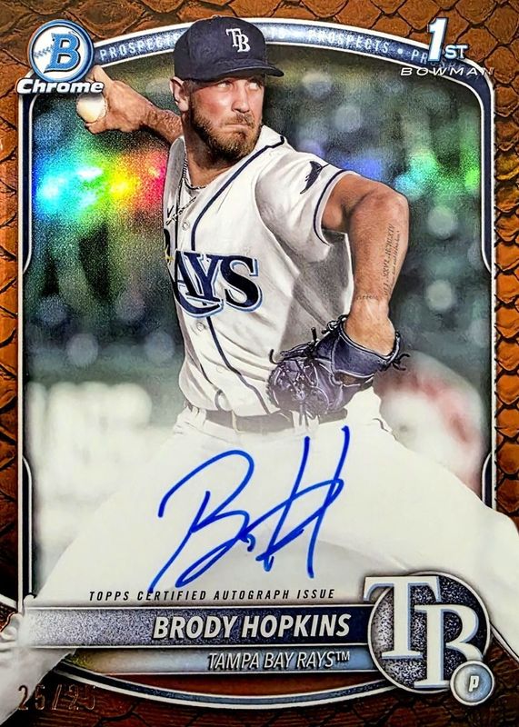 2025 Bowman Chrome Brody Hopkins 1st Auto Orange Reptilian /25 Tampa Bay Rays