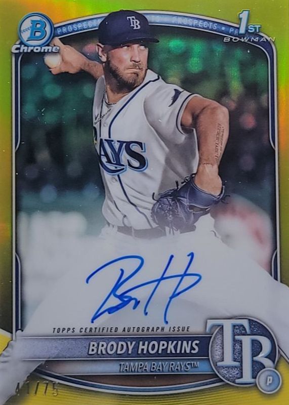 2025 Bowman Chrome BRODY HOPKINS 1ST Yellow Refractor RAYS AUTO 45/75 Rookie Rc