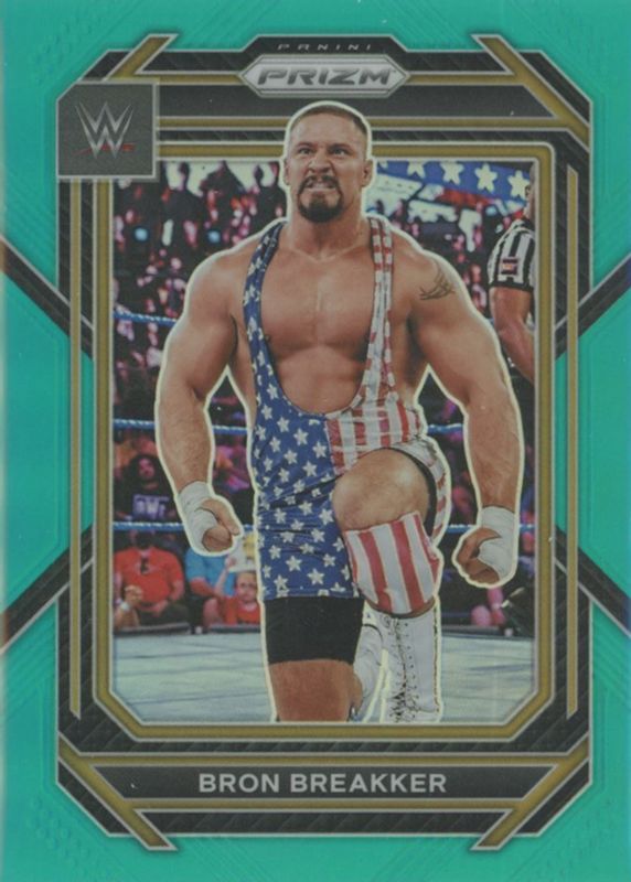The Bron Breakker 2023 Prizm WWE #161 Teal /49 card in Raw condition has not changed in price in the last 30 days and was last sold for $10.00 .