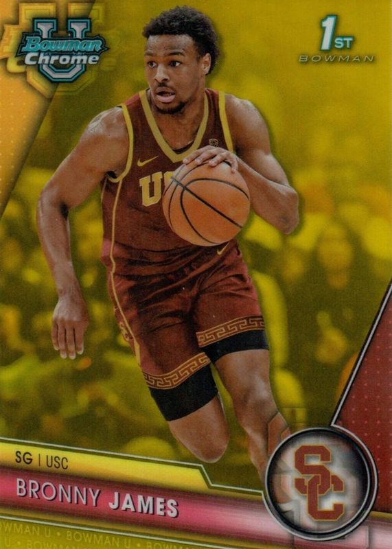 Best Prices Available For Sale of Bronny James Jr. 2023 Bowman Chrome University Sapphire Edition #95 Yellow /75 (1st)