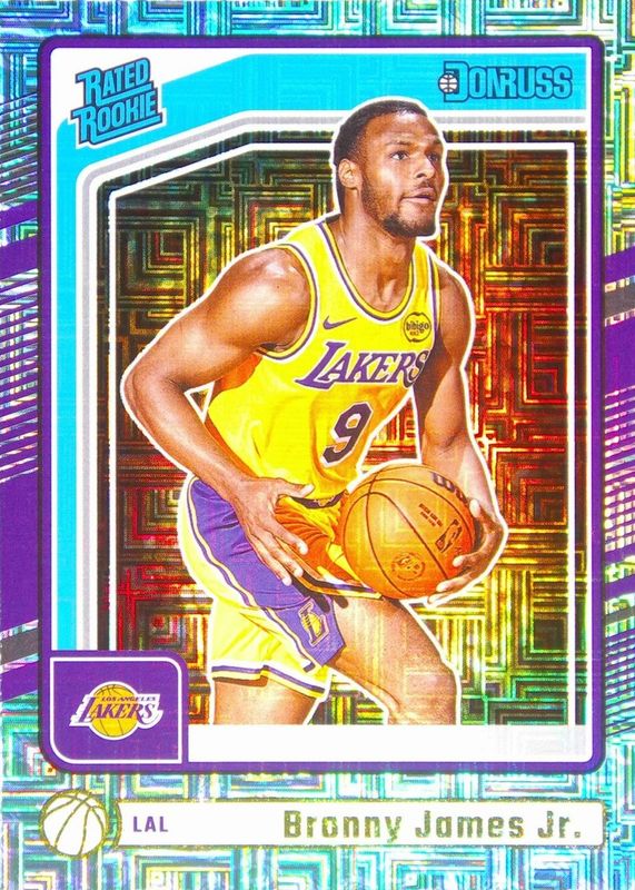 This card is 1 of 72 Bronny James Jr.'s card variations in the 2024 Donruss set being tracked by Sports Card Investor, including Base, Disco, Holo Green Laser, International, and International Holo Maroon Laser.