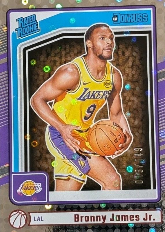 This card is 1 of 72 Bronny James Jr.'s card variations in the 2024 Donruss set being tracked by Sports Card Investor, including Base, Disco, Holo Green Laser, International, and International Holo Maroon Laser.