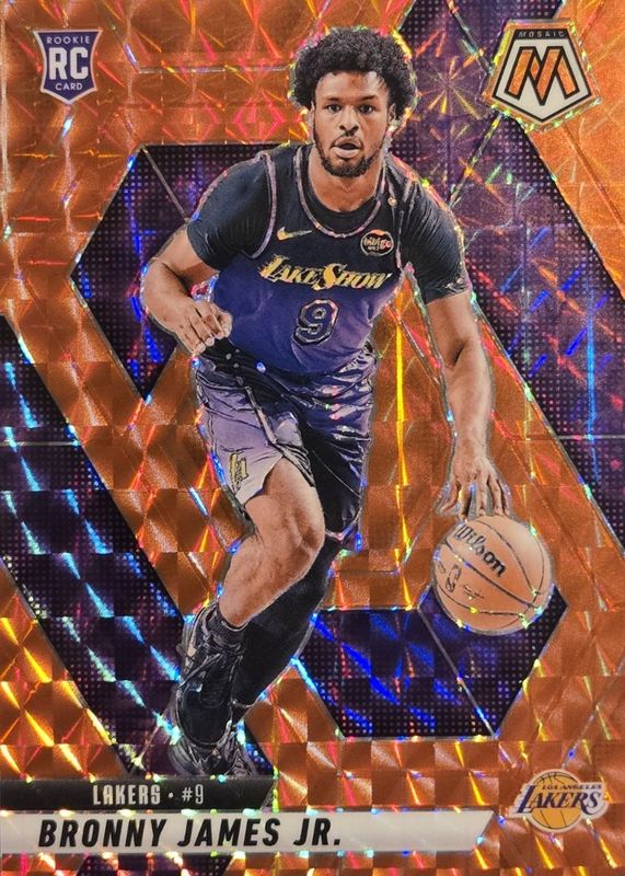 The Bronny James Jr. 2024 Mosaic #214 Orange /249 Rookie card in Raw condition has moved up $0.26 (+13.0%) in the last 30 days and was last sold for $2.26 .