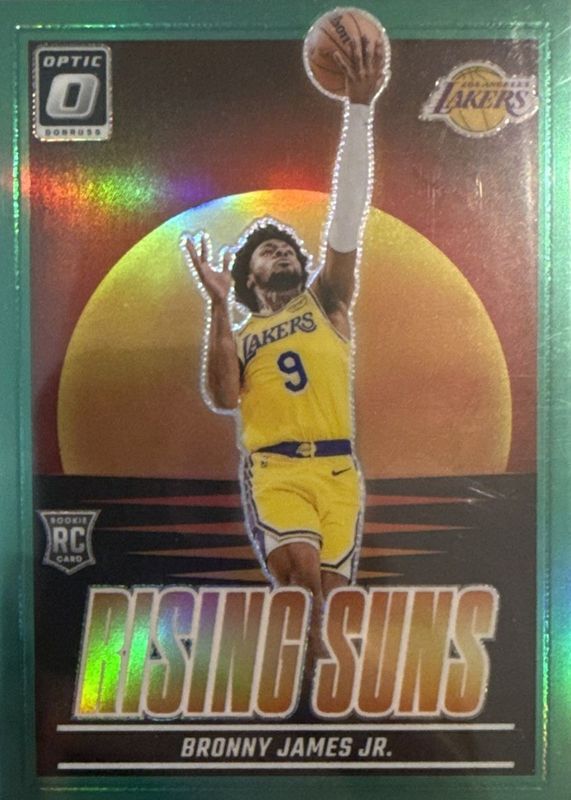 The Bronny James Jr. 2024 Optic #5 Rising Suns - Green /5 Rookie card in Raw condition has not changed in price in the last 30 days and was last sold for $95.00 .