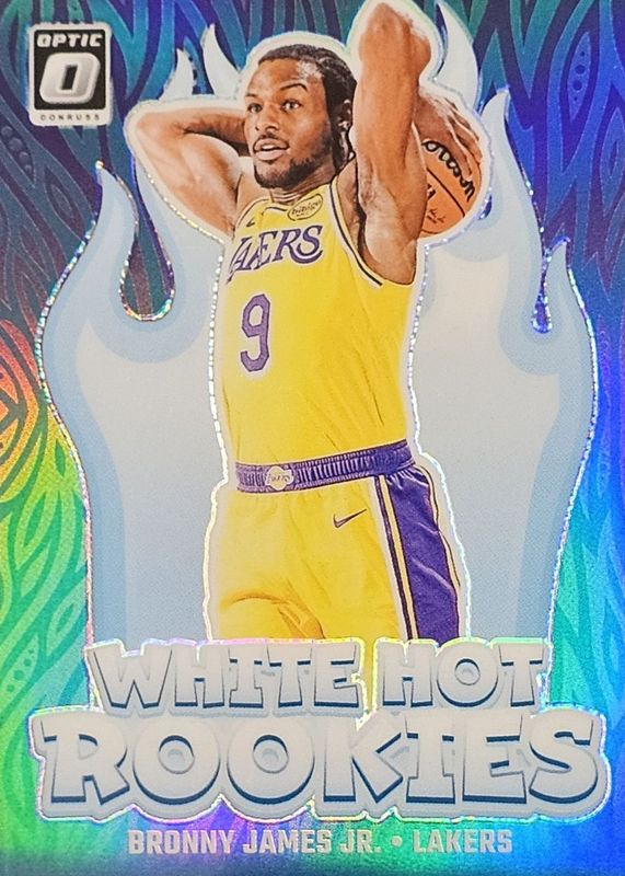 The Bronny James Jr. 2024 Optic #15 White Hot Rookies - Purple card in Raw condition has moved up $0.01 (+1.0%) in the last 30 days and was last sold for $1.00 .