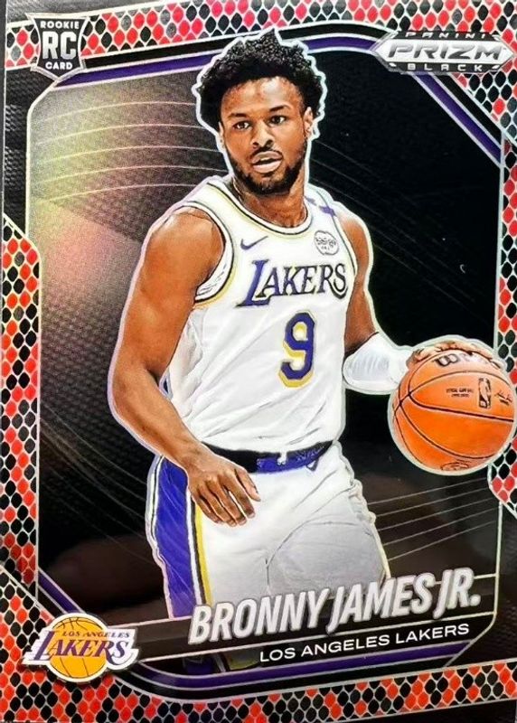The Bronny James Jr. 2024 Prizm Black #94 Snakeskin /(SSP) Rookie card in Raw condition has not changed in price in the last 30 days and was last sold for $41.00 .