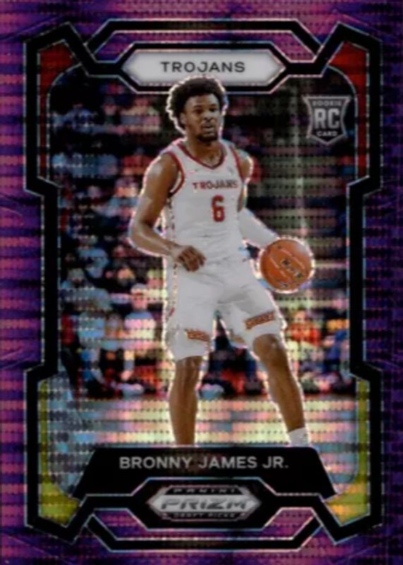 The Bronny James Jr. 2024 Prizm Draft Picks #86 Purple Pulsar /55 Rookie card in Raw condition has not changed in price in the last 30 days and was last sold for $14.63 .