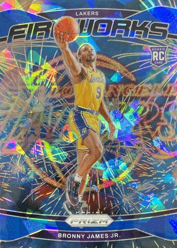 2024-25 Panini Prizm - Fireworks Bronny James #14 Blue Ice Prizm /125 Rookie RC