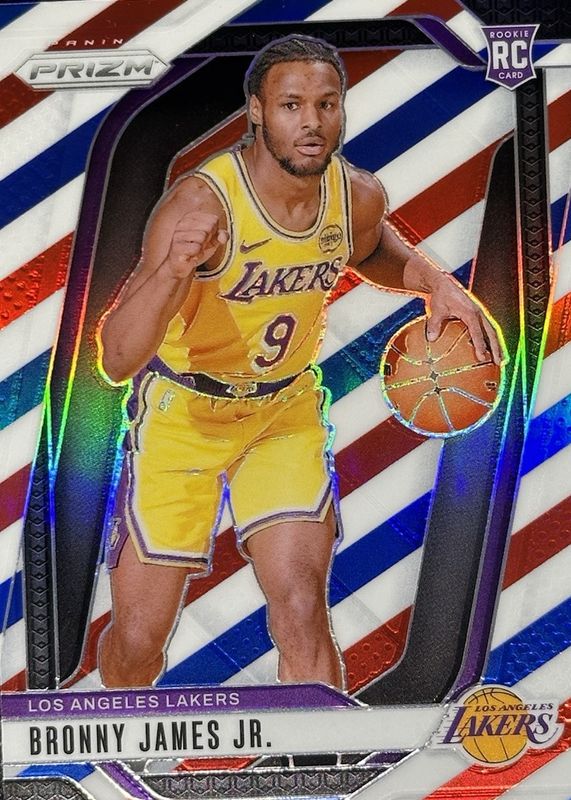 The Bronny James Jr. 2024 Prizm #243 Red White Blue Rookie card in Raw condition has moved up $8.00 (+400%) in the last 30 days and was last sold for $10.00 .