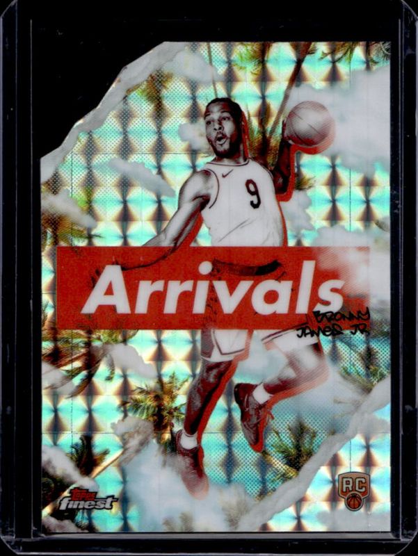 The Bronny James Jr. 2024 Topps Finest #A-2 Arrivals - Geometric Refractor Rookie card is 1 of 135 Bronny James Jr.'s card variations in the 2024 Topps Finest set being tracked by Sports Card Investor, including Arrivals, Arrivals - Refractor, Arrivals - X-Fractor, Base Common, and Base Common - Refractor.