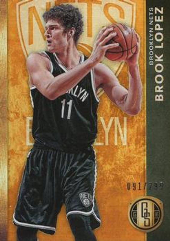 The Brook Lopez 2015 Gold Standard #99 Base /149 card is 1 of 3 Brook Lopez's card variations in the 2015 Gold Standard set being tracked by Sports Card Investor, including AU /79, and Black /15.