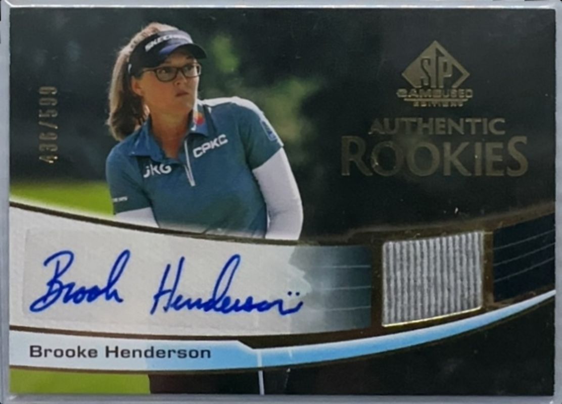 The Brooke Henderson 2024 SP Game Used #101 Base /599 Rookie card is 1 of 10 Brooke Henderson's card variations in the 2024 SP Game Used set being tracked by Sports Card Investor, including #74 Base /599, #74 Shirt Gold, #74 Auto Spectrum /25, #101 Auto Spectrum /25, and #74 Auto Red /15.