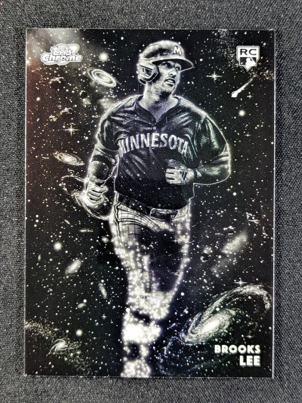 The Brooks Lee 2025 Topps Chrome Cosmic #129 Constellation Variation /(SSP) Rookie card is 1 of 54 Brooks Lee's card variations in the 2025 Topps Chrome Cosmic set being tracked by Sports Card Investor, including Base, Nucleus Refractor, Refractor, Aqua Equinox Refractor /199, and Purple Nebula Refractor /150.