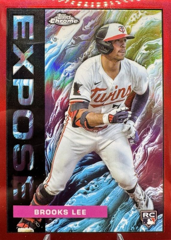 The Brooks Lee 2025 Topps Chrome #TCE-29 Expose - Red Refractor /5 Rookie card in Raw condition has not changed in price in the last 30 days and was last sold for $300.00 .