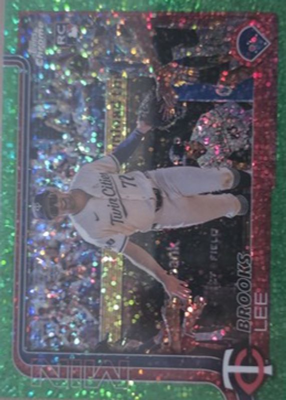 The Brooks Lee 2025 Topps Chrome #234 Image Variation - Green Speckle Refractor /99 Rookie card in Raw condition has not changed in price in the last 30 days and was last sold for $33.02 .