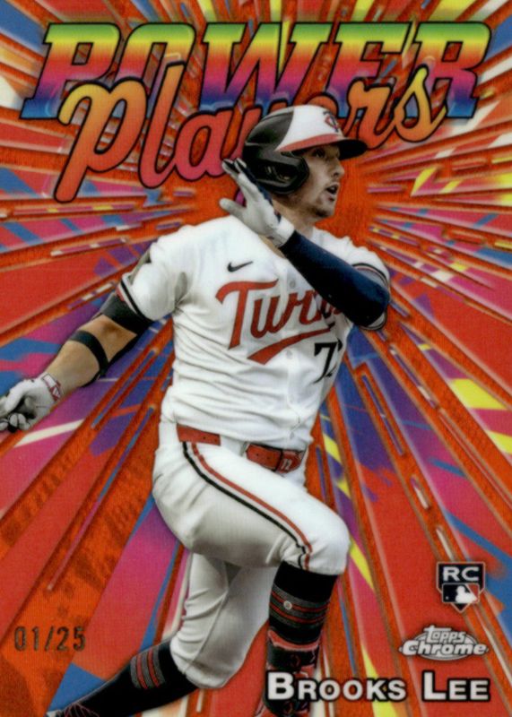 The Brooks Lee 2025 Topps Chrome #PP-23 Power Players - Orange Refractor /25 Rookie card in Raw condition has not changed in price in the last 30 days and was last sold for $22.00 .