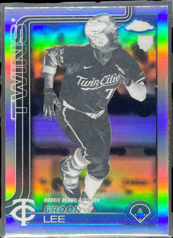 The Brooks Lee 2025 Topps Chrome Update #USC6 Negative Refractor Rookie card is 1 of 123 Brooks Lee's card variations in the 2025 Topps Chrome Update set being tracked by Sports Card Investor, including Base, Image Variation, Rookie Debut, Geometric Refractor, and Prism Refractor.