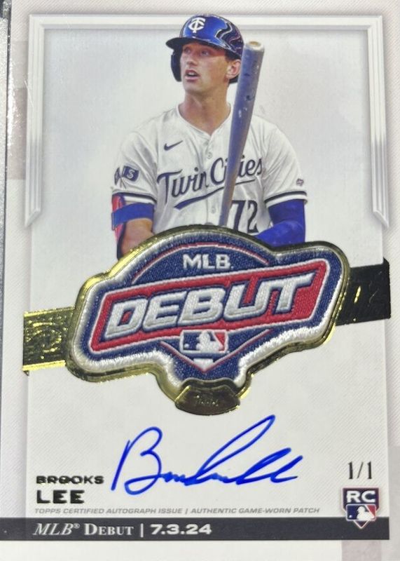 The Brooks Lee 2025 Topps Chrome Update #RDPA-BLE Rookie Debut Patch Autographs /1 card in Raw condition has not changed in price in the last 30 days and was last sold for $23,500.00 .