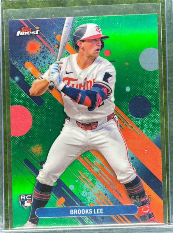 The Brooks Lee 2025 Topps Finest #31 Base Common - Green Refractor /75 Rookie card is 1 of 154 Brooks Lee's card variations in the 2025 Topps Finest set being tracked by Sports Card Investor, including Common, Rare, Uncommon, Common - Checkerboard Refractor, and Common - Refractor.
