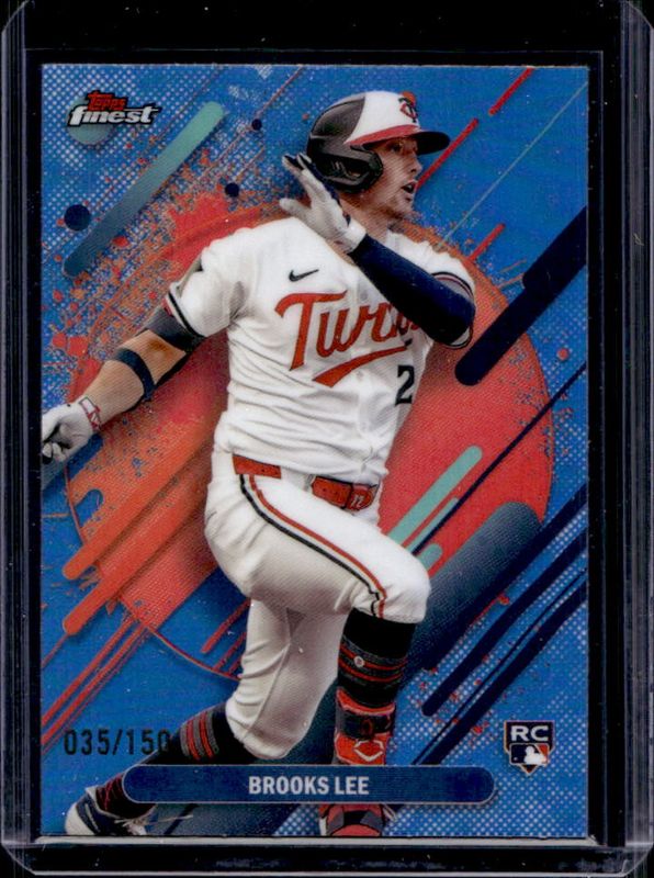 The Brooks Lee 2025 Topps Finest #299 Base Rare - Sky Blue Refractor /150 Rookie card is 1 of 154 Brooks Lee's card variations in the 2025 Topps Finest set being tracked by Sports Card Investor, including Common, Rare, Uncommon, Common - Checkerboard Refractor, and Common - Refractor.