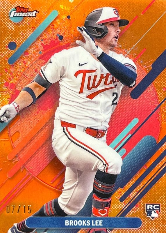 The Brooks Lee 2025 Topps Finest #299 Rare - Orange Refractor /15 Rookie card in Raw condition has not changed in price in the last 30 days and was last sold for $38.00 .