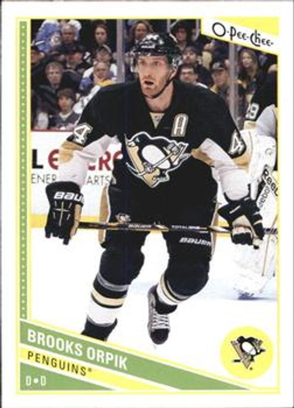 The Brooks Orpik 2013 O-Pee-Chee #101 Base card is 1 of 6 Brooks Orpik's card variations in the 2013 O-Pee-Chee set being tracked by Sports Card Investor, including Rainbow, Red, Retro, Retro Blank Back, and Black Rainbow /100.