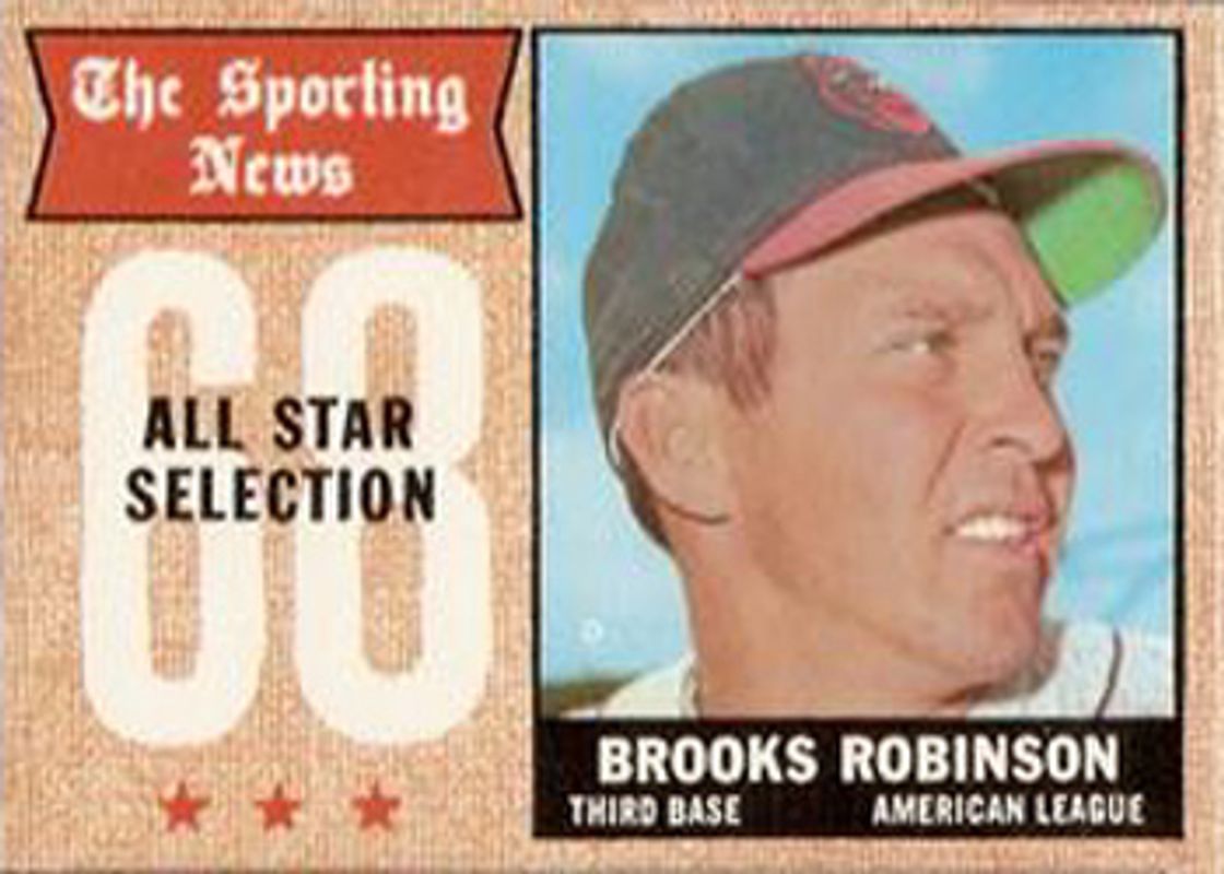 The Brooks Robinson 1968 Topps #365 Base card is 1 of 4 Brooks Robinson's card variations in the 1968 Topps set being tracked by Sports Card Investor, including #20 Base, #530 Base, and #9 Game.