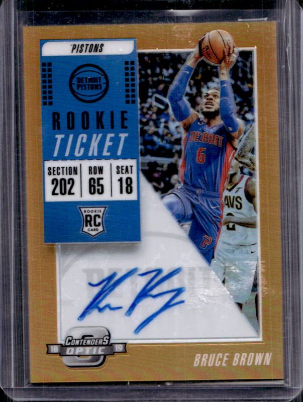 The Bruce Brown 2018 Contenders Optic #102 Orange /25 Rookie card is 1 of 21 Bruce Brown's card variations in the 2018 Contenders Optic set being tracked by Sports Card Investor, including Base, Blue /99, Gold /10, Gold Vinyl /1, and Printing Plate Black /1.
