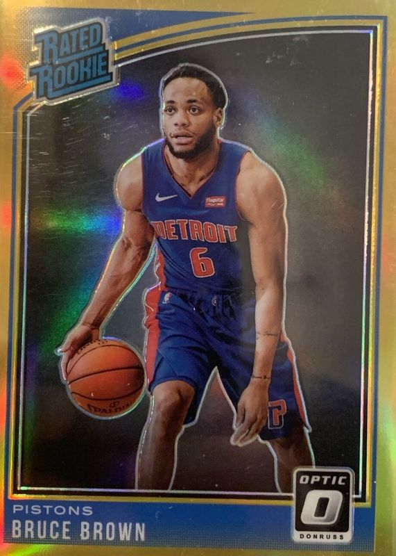 The Bruce Brown 2018 Optic #161 Gold /10 Rookie card in Raw condition has not changed in price in the last 30 days and was last sold for $50.00 .