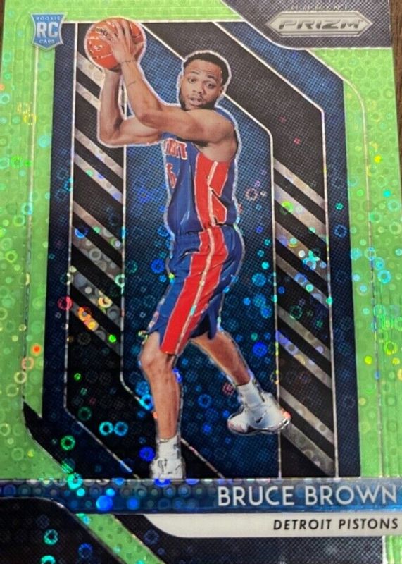The Bruce Brown 2018 Prizm #132 Fast Break Neon Green /5 Rookie card in Raw condition has not changed in price in the last 30 days and was last sold for $48.52 .