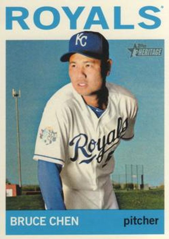 The Bruce Chen 2013 Topps Heritage #66 Base card is 1 of 2 Bruce Chen's card variations in the 2013 Topps Heritage set being tracked by Sports Card Investor, including Venezuelan.