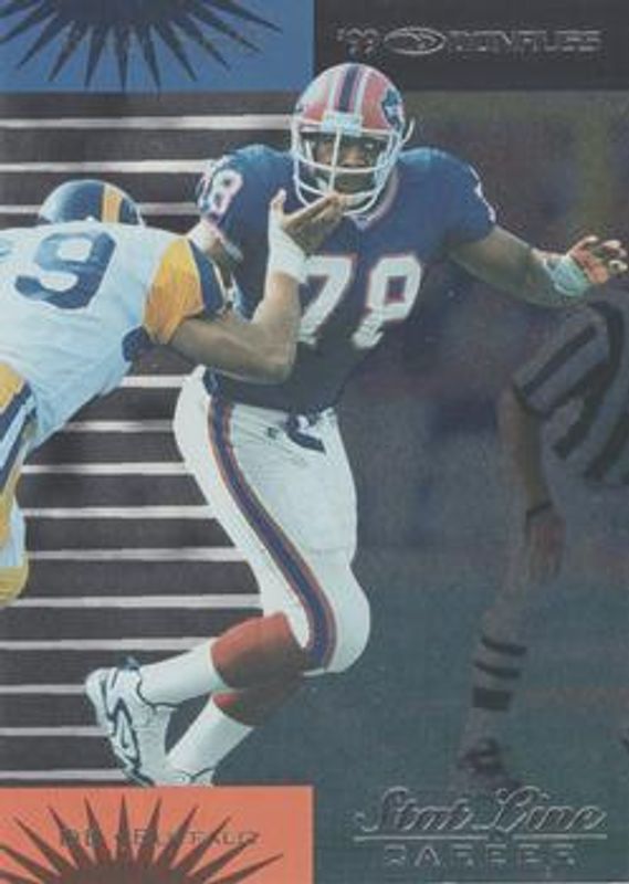 The Bruce Smith 1999 Donruss #18 Stat Line Career /223 card is 1 of 3 Bruce Smith's card variations in the 1999 Donruss set being tracked by Sports Card Investor, including Base, and Stat Line Season /14.