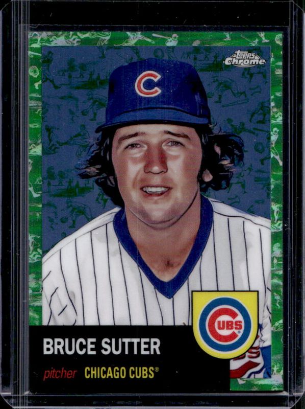 The Bruce Sutter 2022 Topps Chrome Platinum Anniversary #53 Platinum Toile White Green Refractor /99 card is 1 of 34 Bruce Sutter's card variations in the 2022 Topps Chrome Platinum Anniversary set being tracked by Sports Card Investor, including Base, Black & White Mini Diamond Refractor, Blue Prism Refractor, Gold Prism Refractor, and Prism Refractor.