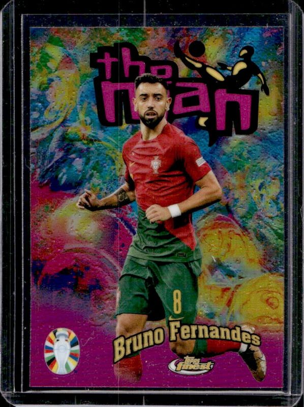 The Bruno Fernandes 2023 Topps Finest Road to UEFA Euro #TM-BF The Man card is 1 of 23 Bruno Fernandes' card variations in the 2023 Topps Finest Road to UEFA Euro set being tracked by Sports Card Investor, including Base, Refractor, Blue Aqua Vaporwave Refractor /250, Blue Refractor /150, and Green Speckle Refractor /125.